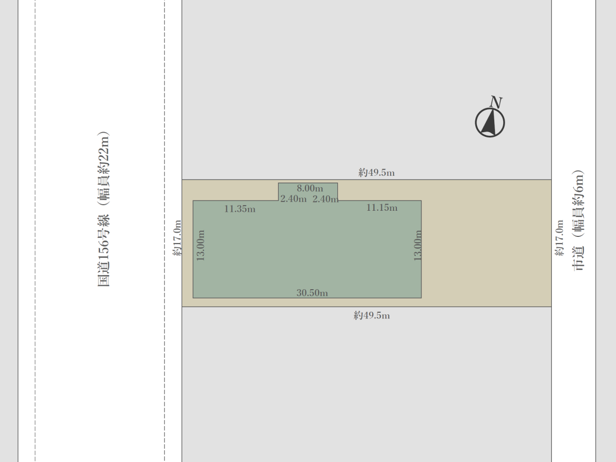 - 国道156号線側から車両の乗入れはできません